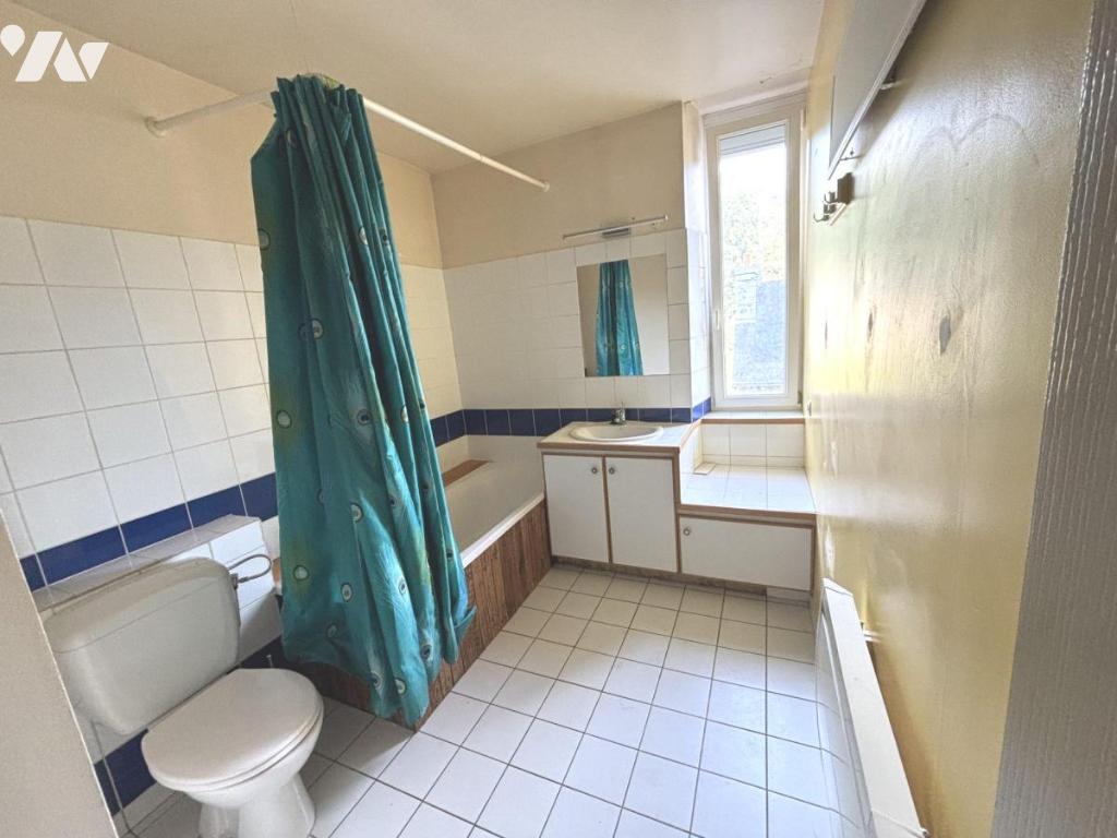 Appartement de type T3 comprenant : entrée, séjour, cuisine, deux chambres, salle de bains avec WC.